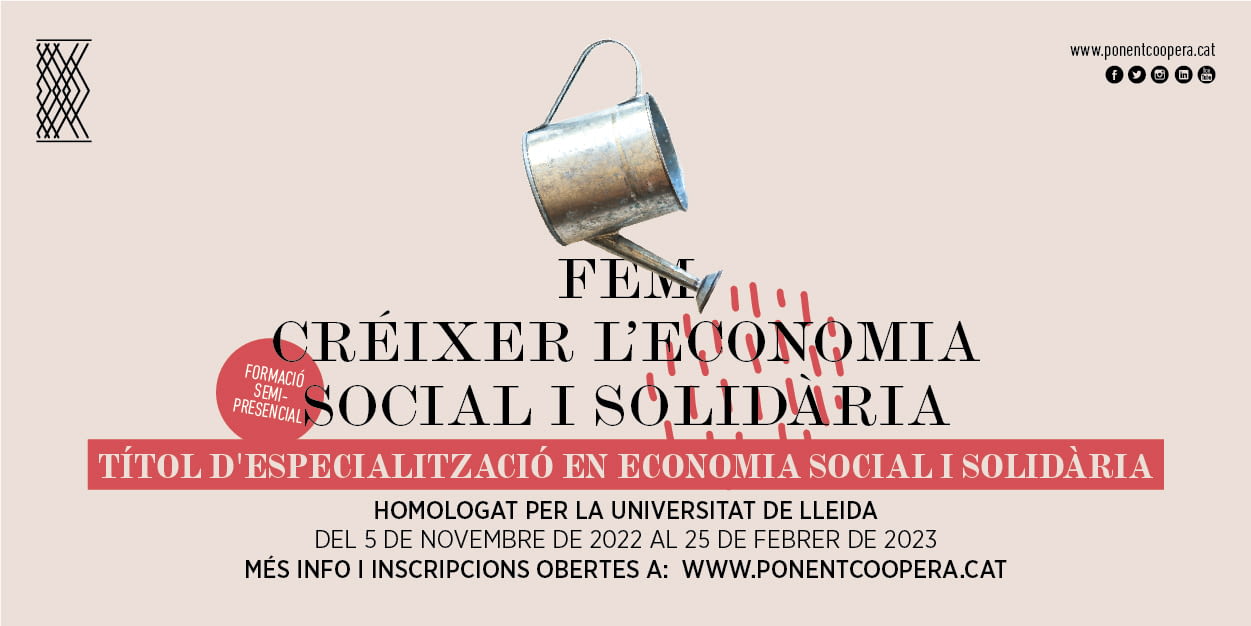 Ponent Coopera i la Universitat de Lleida obren les inscripcions de la 8a edició del Títol d’especialització en Economia Social i Solidària